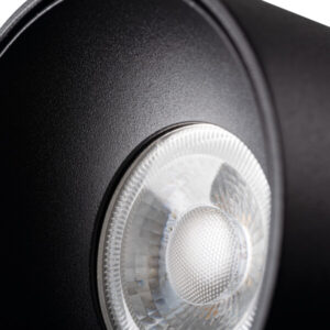 Kanlux RITI noir est en aluminium, avec une finition mate sablée et un réflecteur laqué en or-cuivre brillant. Elle offre une fabrication de qualité et un design contemporain, idéale pour un éclairage autonome ou combiné avec d’autres luminaires.